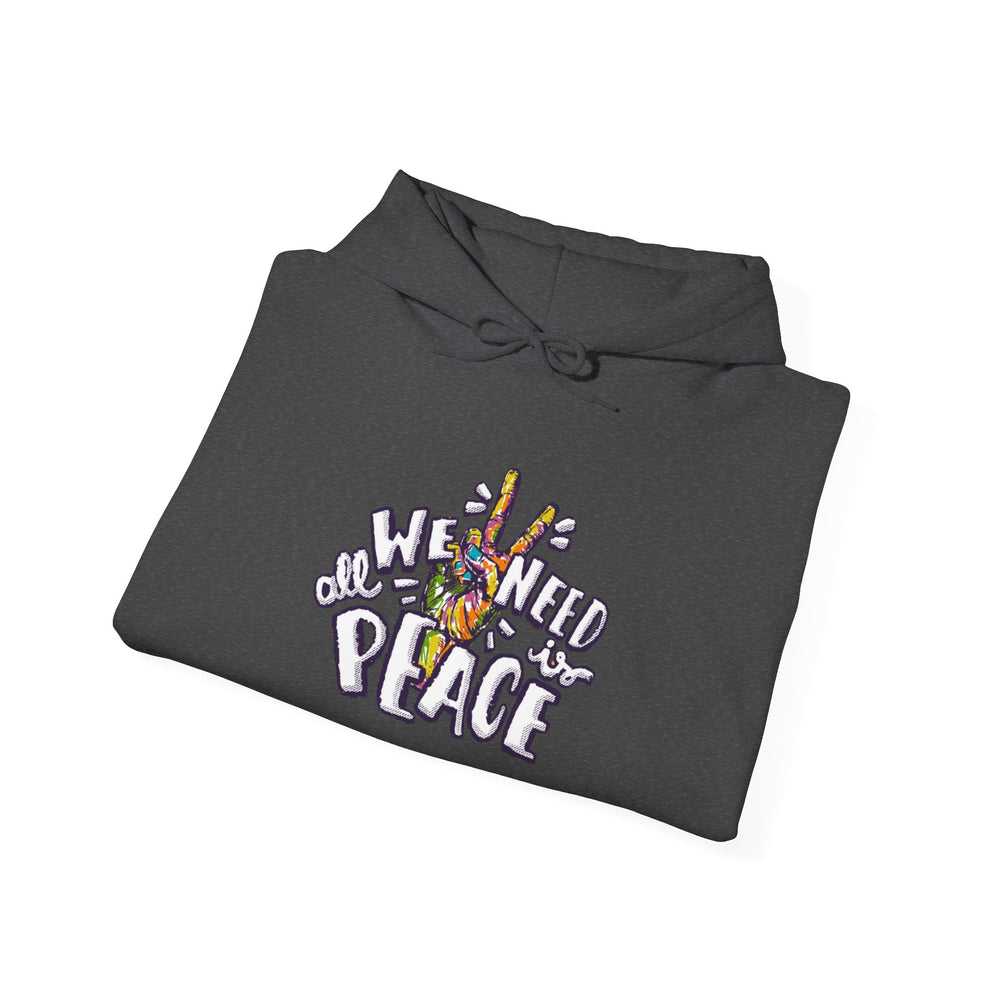 This cozy hoodie blends soft warmth with a gentle, expressive design. The white fleece backdrop showcases a colorful central illustration and the hand-lettered phrase “We Need Peace,” creating a calm, hopeful vibe that feels both personal and thoughtful. The roomy kangaroo pocket and double-lined hood invite quiet mornings and long walks, while the slightly structured fit keeps the look wearable every day. It’s for someone who wants comfort without losing the chance to share a quiet message — a wearable reminder to move through the day with care and intention.