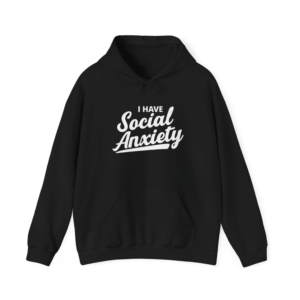 A soft, midweight hoodie that says what you feel without saying much at all. The black pullover features clean white lettering that reads “I have Social Anxiety,” rendered in a hand-lettered script that’s equal parts honest and quietly funny. Slip it on for low-key days when crowds drain you, for evenings on the couch, or for brief outings where comfort and a little honest signage matter. The double-lined hood and spacious kangaroo pocket cradle you on chilly commutes, while the classic fit and tear-away label keep things comfortable and itch-free. Thoughtful details — color-matched drawcord, sturdy tubular knit, and high-quality print/embroidery options — make this hoodie built to last and easy to wear again and again.
