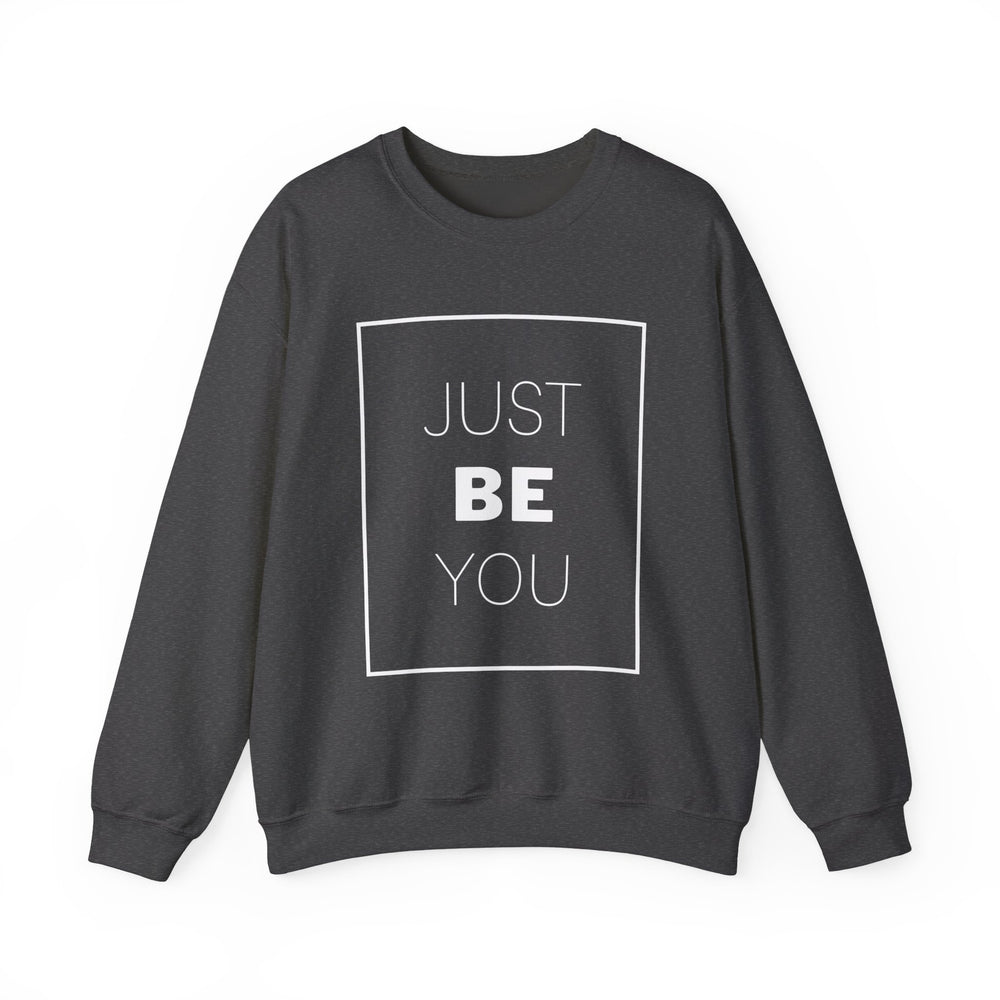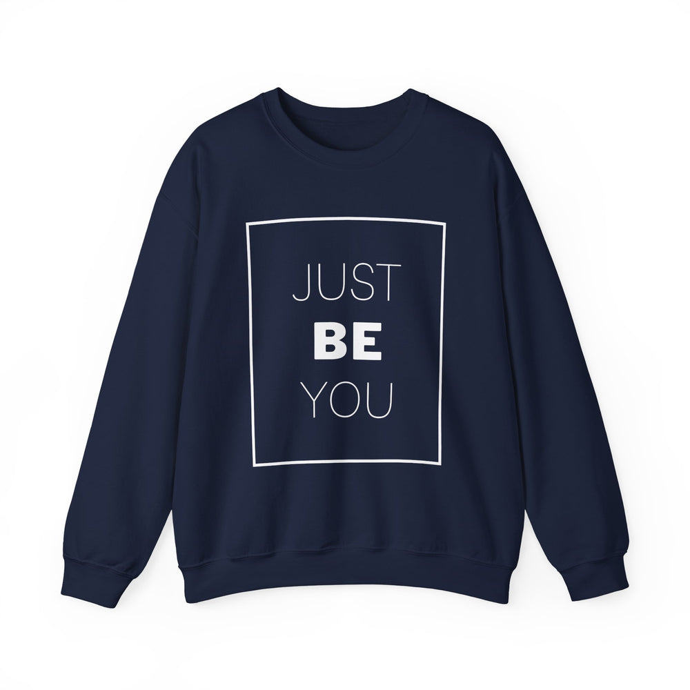 A soft, midweight crewneck that says less and means more. This sweatshirt’s clean black canvas and simple framed message — “JUST BE YOU” — feels like a quiet nudge to slow down and stand steady. The fabric has a familiar, lived-in hand: warm without being bulky, with ribbed cuffs and hem that hold their shape. Wear it on a cool morning walk, layered for a coffee shop writing session, or curled up reading while the world does its thing outside. It’s the kind of go-to that fades into your routines, not the other way around, and the embroidered/printed detail gives the front a subtle, confident presence that reads as thoughtful rather than loud.