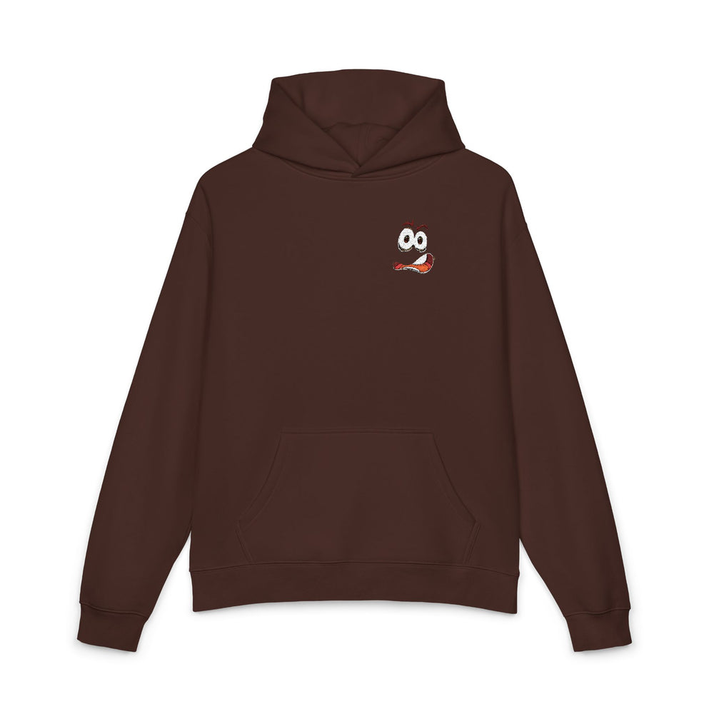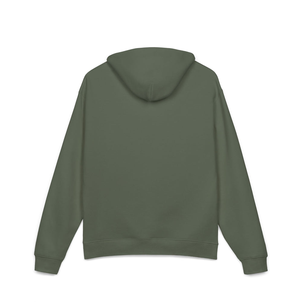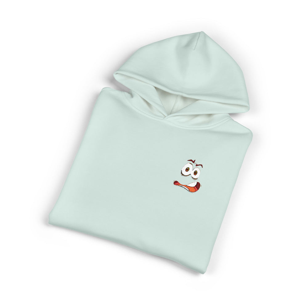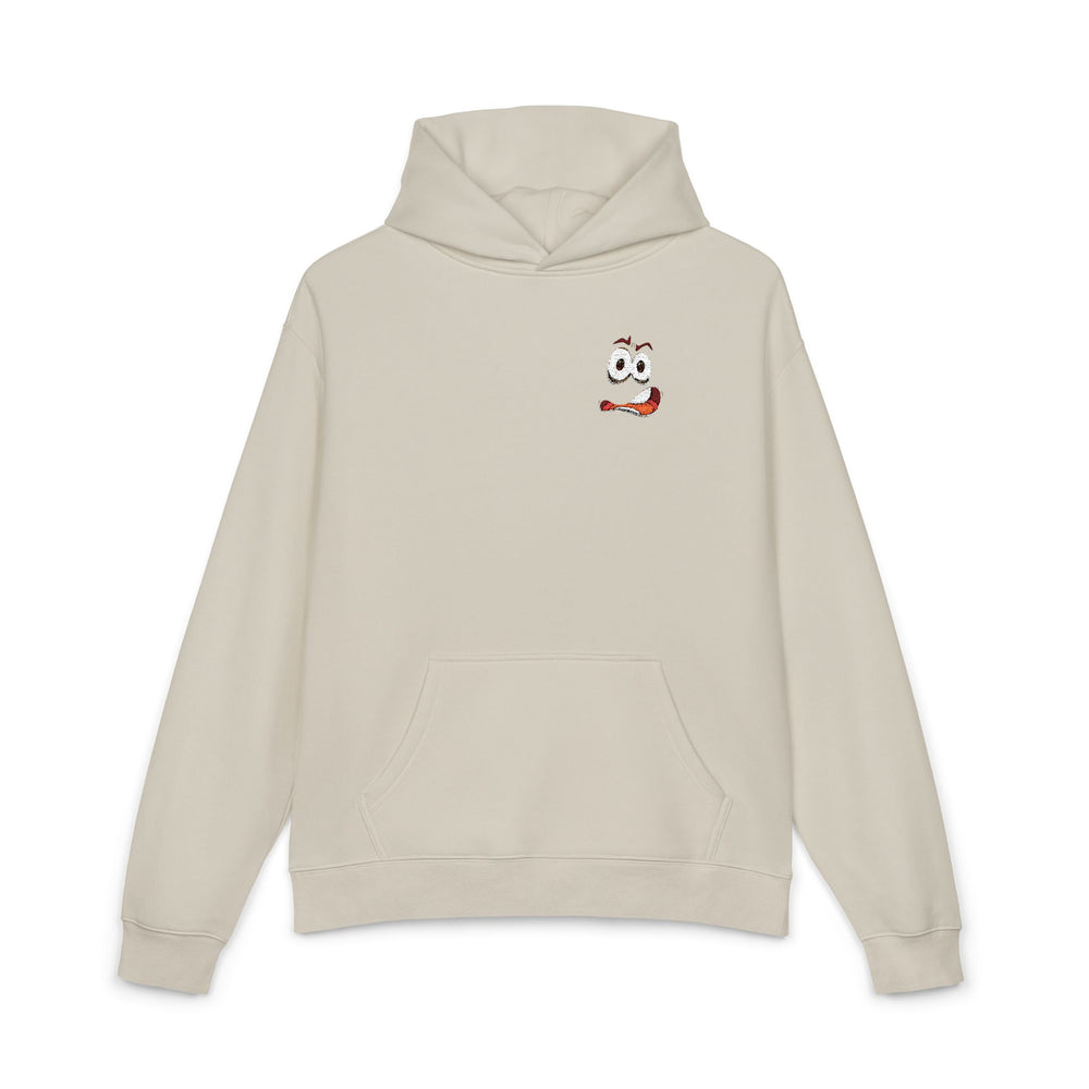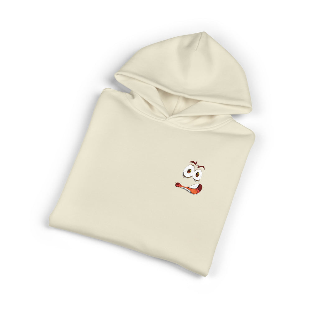 A soft, relaxed hoodie that feels like a familiar hug. The medium-heavy 80/20 cotton-poly fabric has body and structure while remaining pleasantly soft against skin. The pullover silhouette, drop shoulders and roomy kangaroo pocket create a casual, lived-in look that layers easily over a tee or under a coat. Subtle ribbed cuffs and a self-lined hood keep the lines clean, while the preshrunk fabric and tear-away label make daily wear effortless. Small, playful chest artwork adds a quiet, personal touch—great for slow mornings, city strolls, or cozying up at a weekend coffee shop.