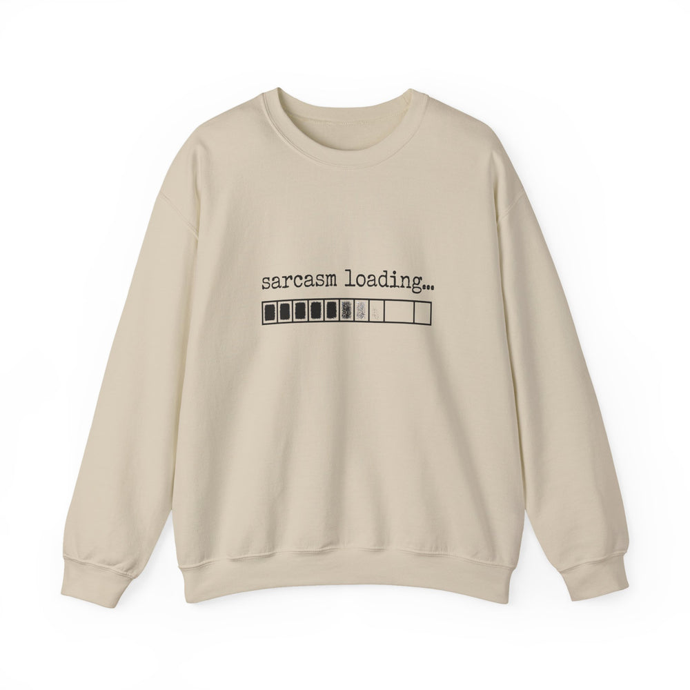 Soft, slightly oversized comfort with a dry, witty edge. This crewneck settles in like a familiar roommate—warm, breathable, and easy to throw on when you want to keep commentary low and sarcasm high. The minimalist front design reads “sarcasm loading…” above a loading bar, so it speaks the language of late-night banter, coffee lines, and long commutes without saying too much. Wear it around friends who appreciate a clever grin, at casual meetups, or during lazy weekends when the world can wait a few more downloads.