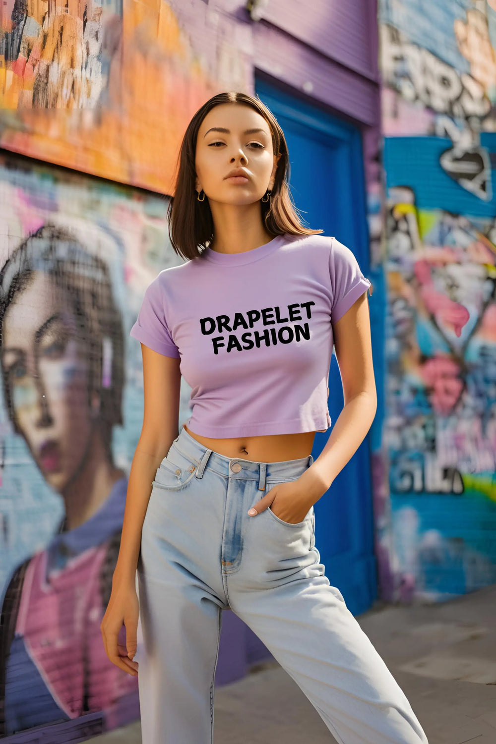 Women's Drapelet Crop Top with Black "Drapelet Fashion" Text